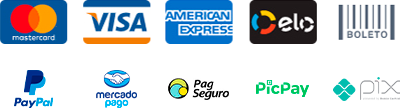 Você pode pagar pela sua compra com todos os principais Cartões de Crédito e Débito, transferências, PIX e PicPay.