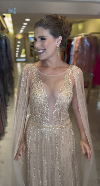 Vestido Capara Brilho e Capa Removivel – Elegance