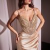 Perfeito para quem deseja brilhar, esse vestido de festa combina sensualidade, elegância e sofisticação na medida certa. O modelo conta com um corpete estruturado, ricamente bordado com pedrarias e brilhos, que desenham a silhueta e proporcionam um efeito visual deslumbrante. Seu decote profundo em V valoriza o colo, enquanto as alças finas trazem leveza e delicadeza ao visual.