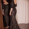 Desperte olhares com este vestido longo de renda preta com capa em tule, uma peça dramática e sofisticada ideal para celebrações noturnas e eventos de gala. Com design refinado e um ar de sensualidade elegante, ele combina a sofisticação da renda com um corte ajustado que valoriza intensamente a silhueta feminina.